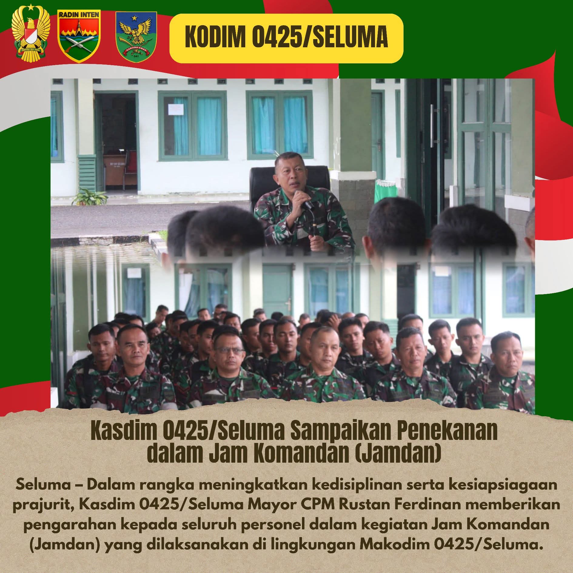 Kegiatan Jam Komandan ini diharapkan dapat meningkatkan disiplin, tanggung jawab, serta integritas prajurit Kodim 0425/Seluma dalam melaksanakan tugas pengabdian kepada bangsa dan negara.