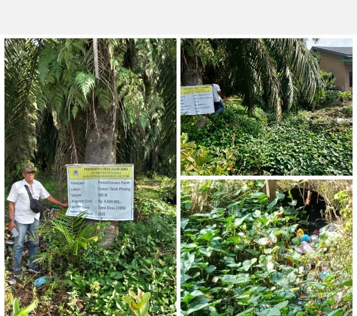 Program pemeliharaan parit yang dibiayai dari Anggaran Dana Desa (ADD) dan Dana Desa (DD) Tahun Anggaran 2025 di Desa Asam Jawa, Kecamatan Torgamba, Kabupaten Labuhanbatu Selatan, Sumatera Utara, dinilai belum optimal oleh masyarakat, meskipun pemerintah desa menyatakan pekerjaan telah selesai.